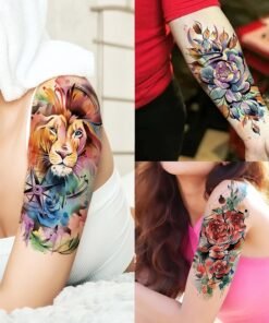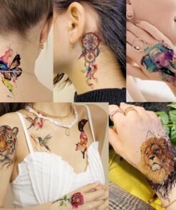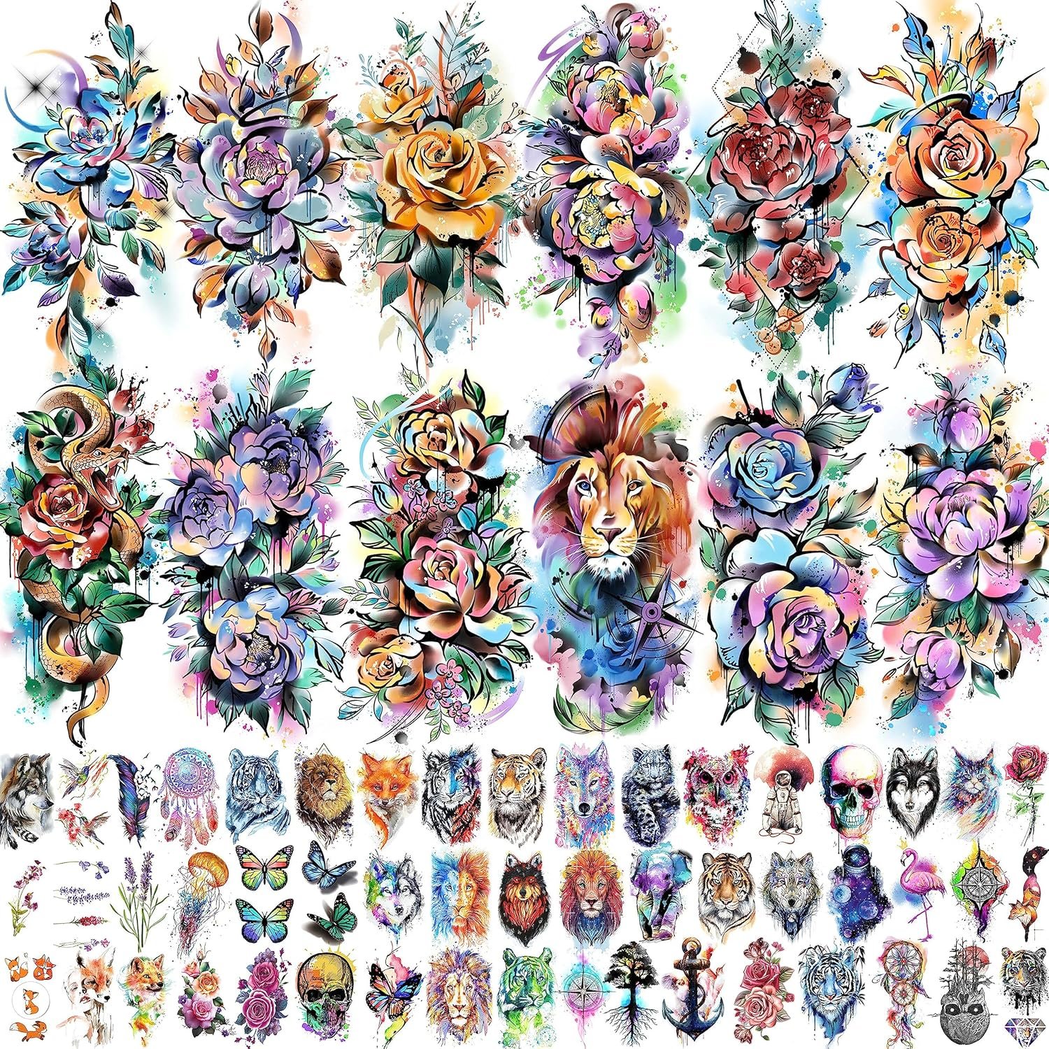 - 🍷63 Sheets Watercolor Temporary Tattoos Sticker Fashion Designs🍸 Original Flower Temporary Tattoos For Women Girls Dreamcatcher Dream Catcher Owl Rose Peony Floral Blossom Tiger Moon Halloween Astronaut Tattoos Set. There Are 12 Sheets 19x9CM 7.4″x3.5″ Large Arm Sleeve Temporary Tattoos For Adults and 51 Sheets 10.5x6CM 4.1″x2.3″ Fun Cute Tiny Small Water Color Temporary Tattoos For Kids Girls Boys Teens In Each Package.