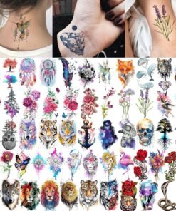 - 💗【69 Sheets SHELYEXIEN Brand Watercolor Rose Florals Temporary Tattoos For Women Adults】 Fake Sleeve Tattoos For Women Girls Including 3D Gothic Tatoos Universe Planets Star Moon Spider Web Cross Birds Scorpion Bat Ghost Elephant Flower Floral Pirate Compass Anchor Butterfly Skull Skeleton Maori Totem Animals Wolf Tiger Lion Dragon Eagle Owl Bear Crown Mountain Sea Wave Snake Tree infinity Letter Words Quotes Abstract ECG Feather Gangster Minimalism Coyote Feather Astronaut Whale Lotus Dreamcatcher.