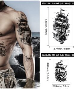 - Long-Lasting and Waterproof Fake Arm Tattoos: These pirate skull tattoos for women men stayed on through about 3-7 days of running, sweating, swimming, lake life, showering, tanning, etc on your face. Our pirate ship temporary tattoos are suitable for girls, Kids, women, men teens and of most ages.