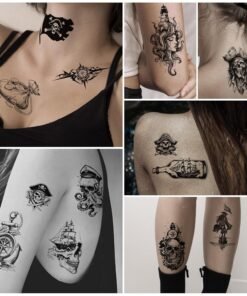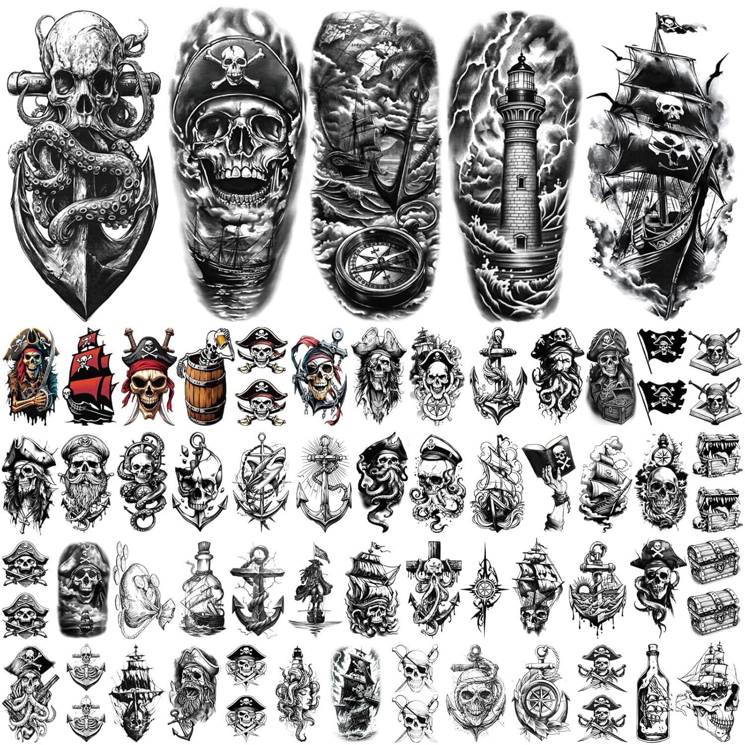 - Large Quantity Pirate Tattoos: Our nautical tattoo includes totally 77 sheets that has different designs such as symbols and designs that reflect the Pirate culture and mythology, Pirate Captain, Anchor, Compass, Sailboat Tattoos, Pirate Ships, Pirate Flag, Skull Crossbones, Sailor Pirate Skull Tattoos, Pirate Hats. Whether you wish to add a spiritual dimension to your look or simply appreciate the beauty of these patterns, our temp tattoos for adults are the perfect choice.